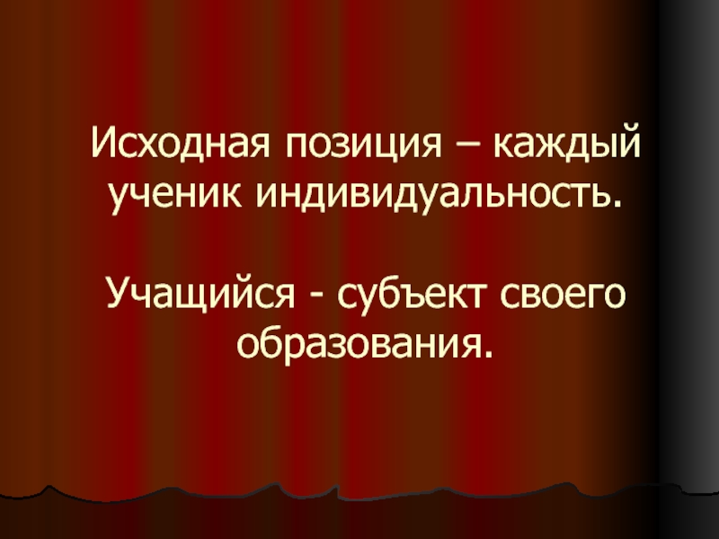 Слайд 12Исходная позиция – каждый ученик индивидуальность.