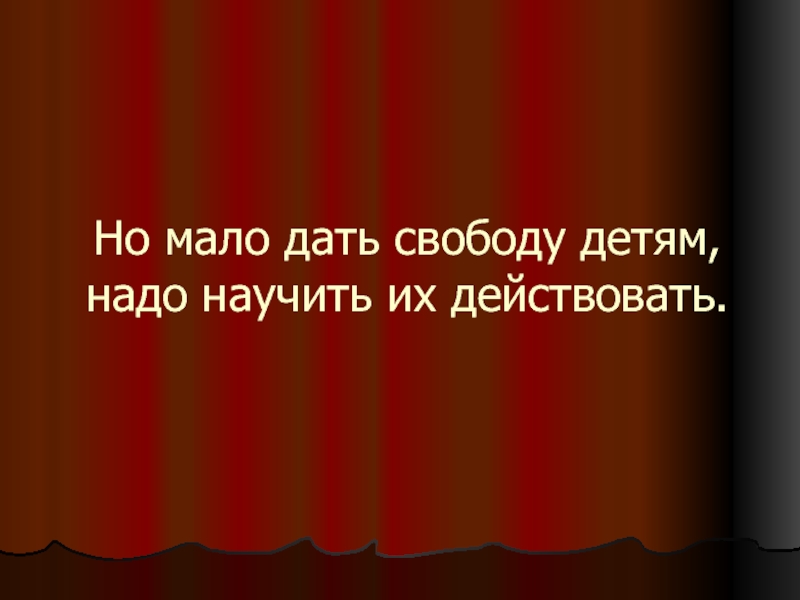 Слайд 14Но мало дать свободу детям, надо научить их действовать.