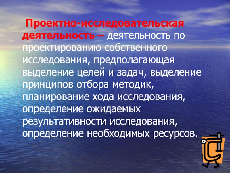 Слайд 5 Проектно-исследовательская деятельность – деятельность по проектированию собственного исследования, предполагающая