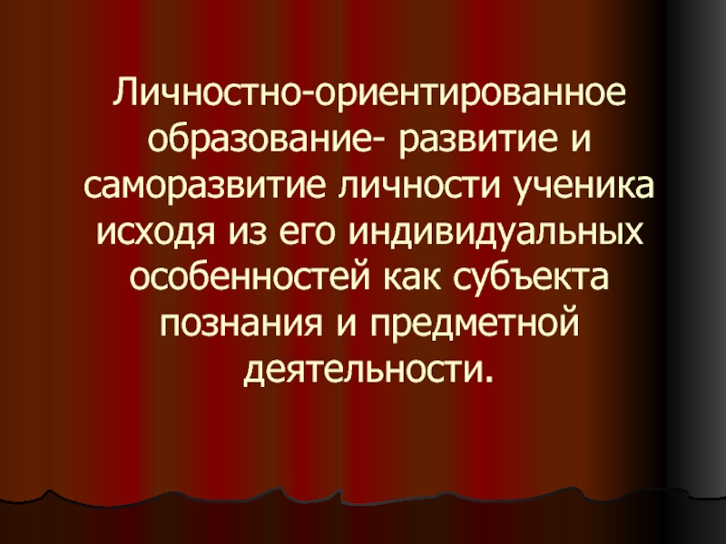 Слайд 18Личностно-ориентированное образование- развитие и саморазвитие личности ученика исходя из его индивидуальных