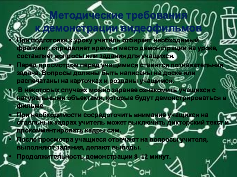 времени и места демонстрации на уроке, составление вопросов или заданий для учащихся).