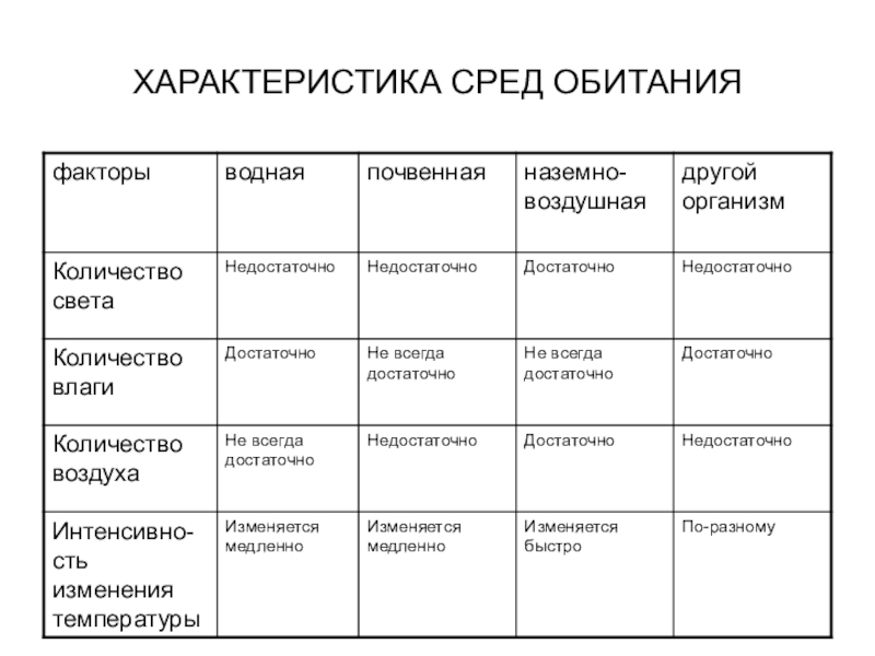 Слайд 6ХАРАКТЕРИСТИКА СРЕД ОБИТАНИЯ