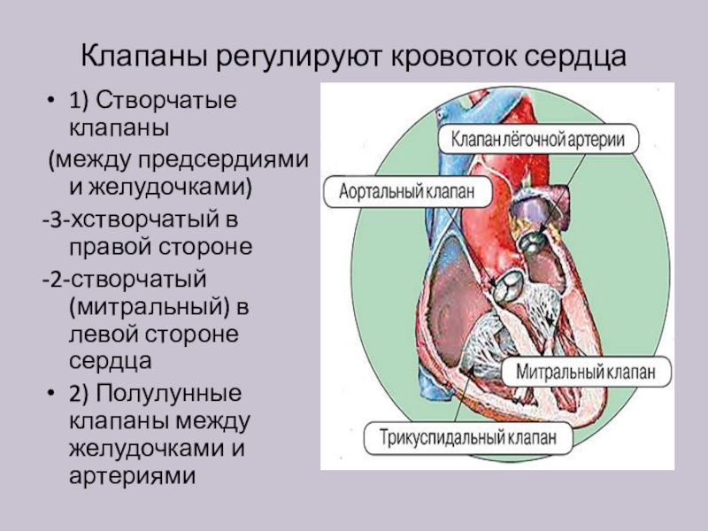 3)Односторонний ток крови обеспечивают створчатые и полулунные клапаны, которые открываются под давлением крови только в одном направлении.