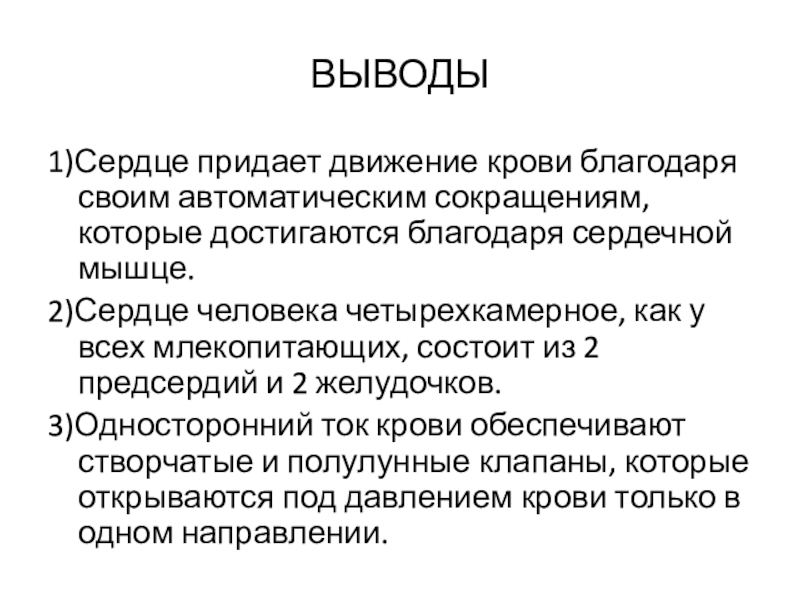 1)Сердце придает движение крови благодаря своим автоматическим сокращениям, которые достигаются благодаря