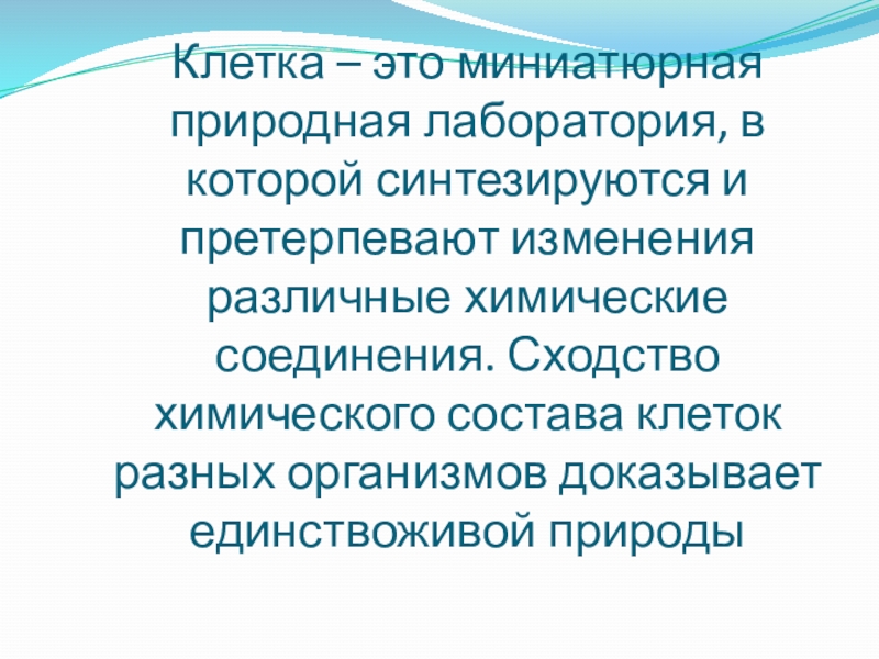 Слайд 13Клетка – это миниатюрная природная лаборатория, в которой синтезируются и претерпевают