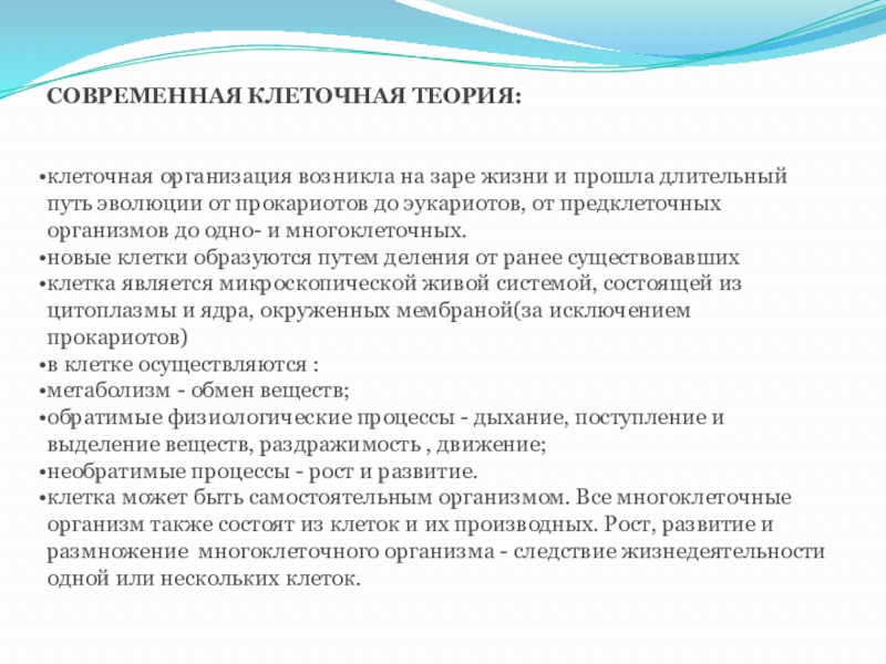 Слайд 4СОВРЕМЕННАЯ КЛЕТОЧНАЯ ТЕОРИЯ: