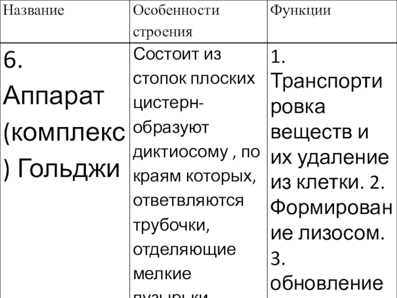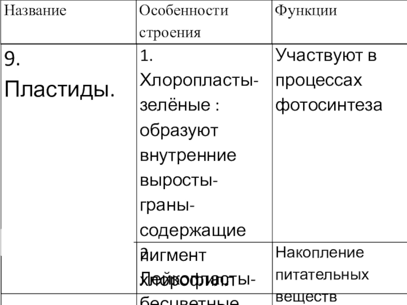 Гольджи; 3. Митохондрии 4. Лизосомы 5. Пластиды