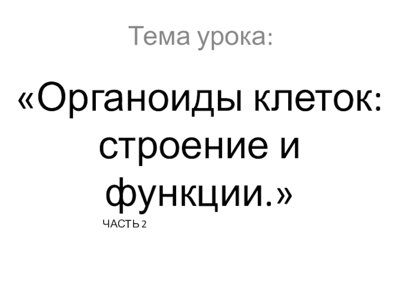 «Органоиды клеток: строение и функции.»Тема урока:ЧАСТЬ 2