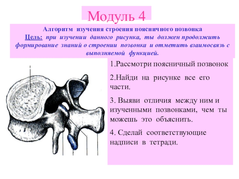 Цель: рассмотрев представленный образец, ты должен получить представление о строении позвонка