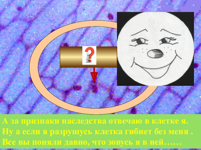 А за признаки наследства отвечаю в клетке я. Ну а если я разрушусь клетка гибнет без меня . Все вы поняли давно, что зовусь я в ней……