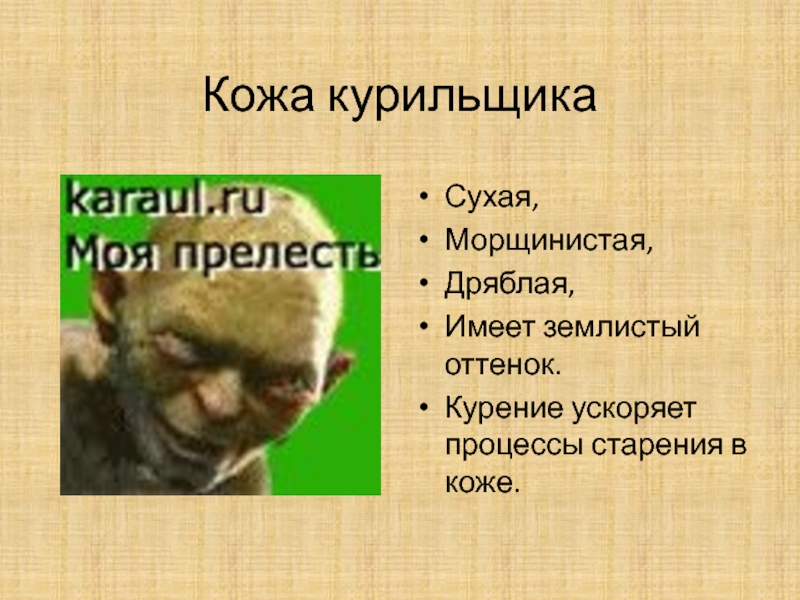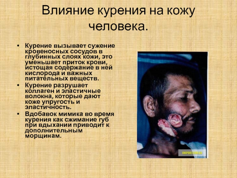 Курение разрушает коллаген и эластичные волокна, которые дают коже упругость и эластичность.