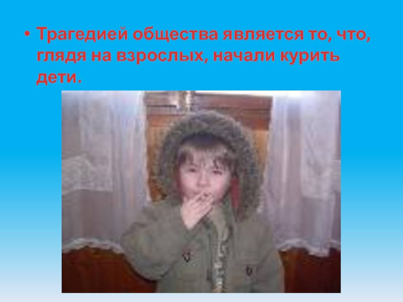 Трагедией общества является то, что, глядя на взрослых, начали курить