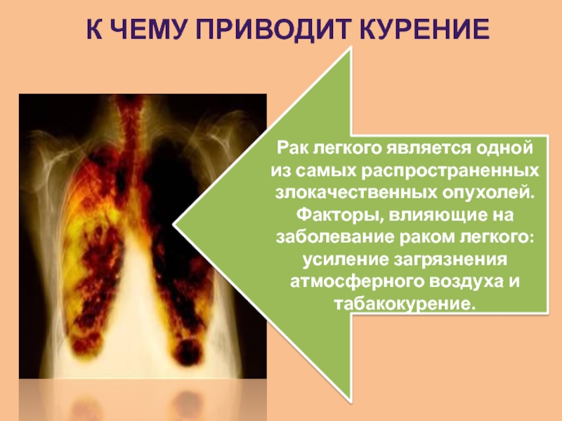 Слайд 20Рак легкого является одной из самых распространенных злокачественных опухолей. Факторы, влияющие