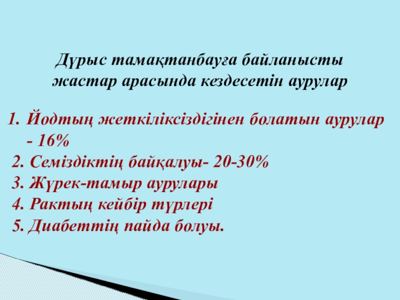 Дүрыс тамақтанбауға байланысты жастар арасында кездесетін аурулар