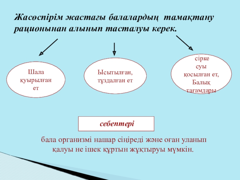 Жасөспірім жастағы балалардың тамақтану рационынан алынып тасталуы керек.