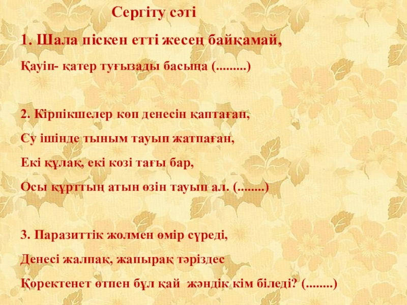 7.Сірқабық ................. және қызметін атқарады. 8.Жалпақ құрттар ................... жәндіктер,ақсұлама жұмыртқадан дамып ..................түзеді.9. Ішекте өмір сүретін паразиттер- ....................
