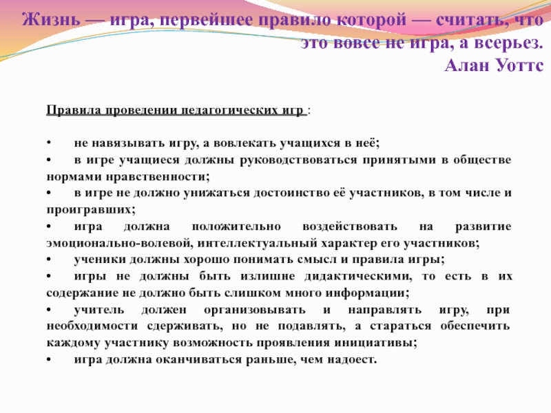 • в игре учащиеся должны руководствоваться принятыми в обществе нормами нравственности;