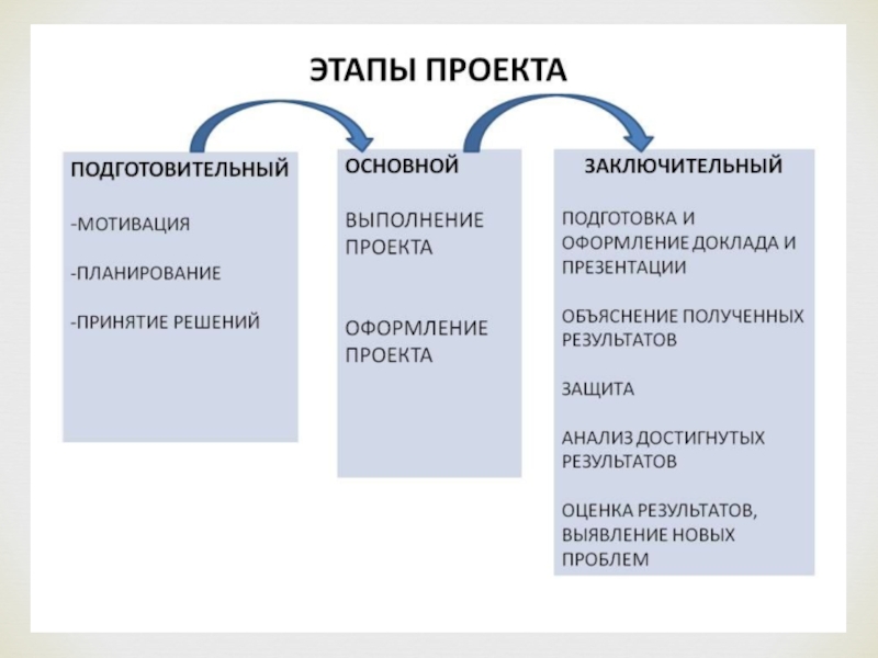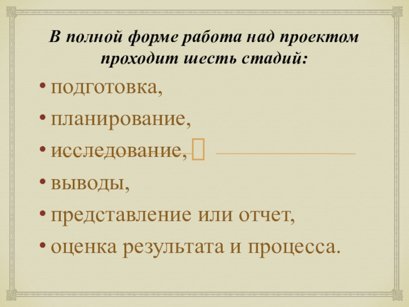 Слайд 3В полной форме работа над проектом проходит шесть стадий: