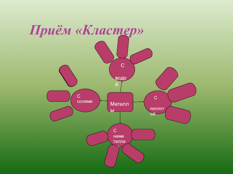 Приём «Кластер»Металлы  С водой  С кислотойС солямиС неметаллами