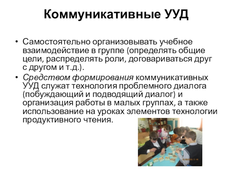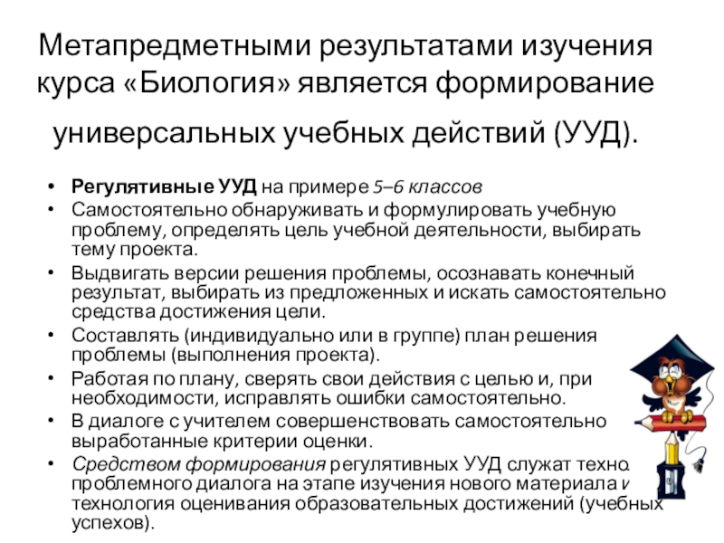 Средством формирования регулятивных УУД служат технология проблемного диалога на этапе изучения нового материала и технология оценивания образовательных достижений (учебных успехов).