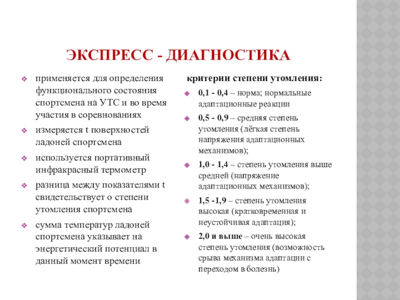 1,0 - 1,4 – степень утомления выше средней (напряжение адаптационных механизмов);