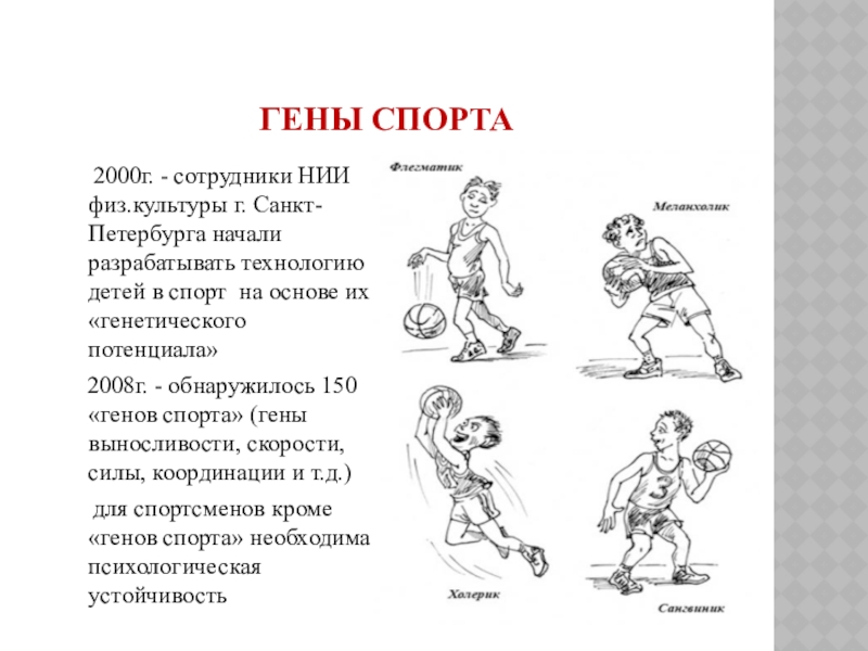 современная наука предполагает, что большинство людей могут оказаться генетически предрасположенными к занятиям различными видами спорта