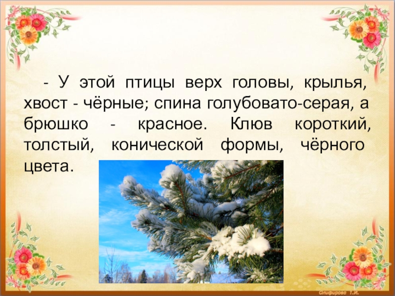 Слайд 21 - Это небольшая птичка красного цвета с цепкими лапками и характерно
