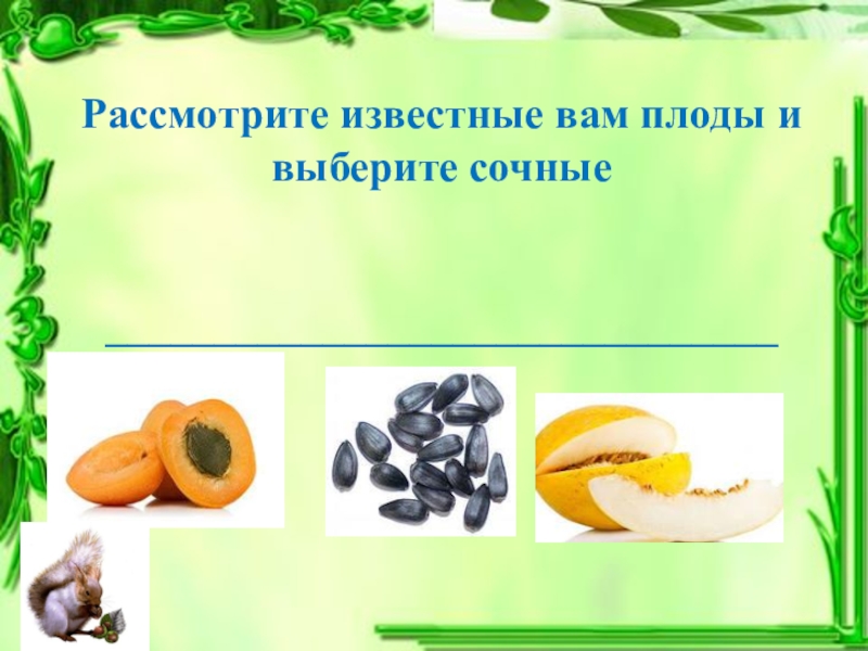 Слайд 4Рассмотрите известные вам плоды и выберите сочные _______________________________