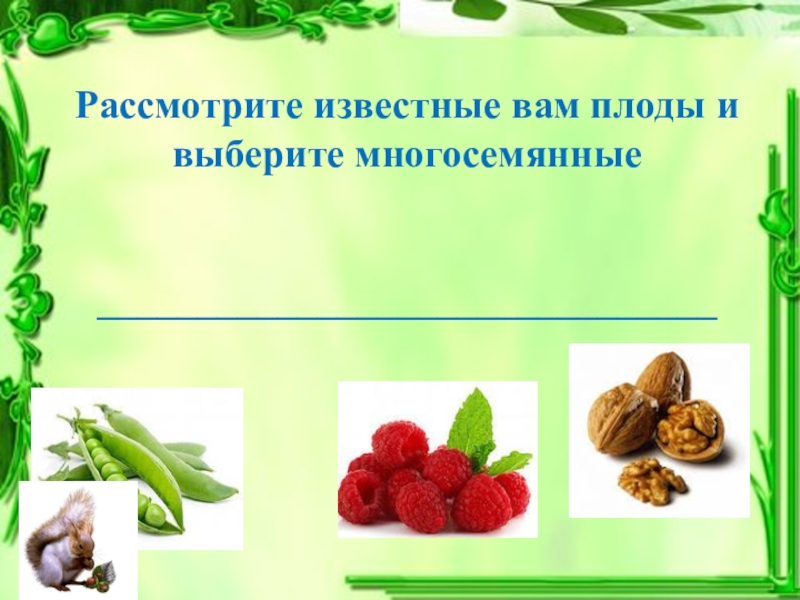 Слайд 9Рассмотрите известные вам плоды и выберите многосемянные _______________________________