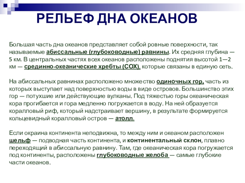 РЕЛЬЕФ ДНА ОКЕАНОВ