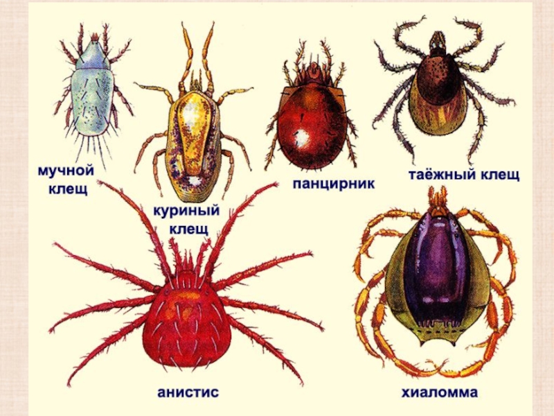 Сотни видов клещей - паразиты птиц и млекопитающих.