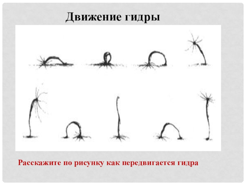Слайд 19Если сосуд, в котором живет гидра, слегка качнуть, то тело животного