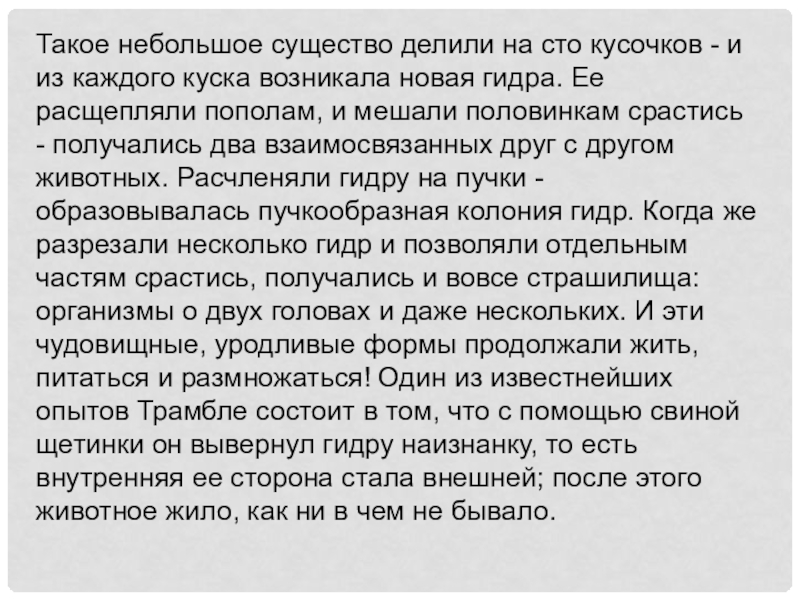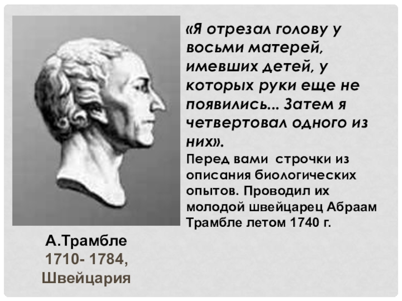 Перед вами строчки из описания биологических опытов. Проводил их молодой швейцарец Абраам Трамбле летом 1740 г.