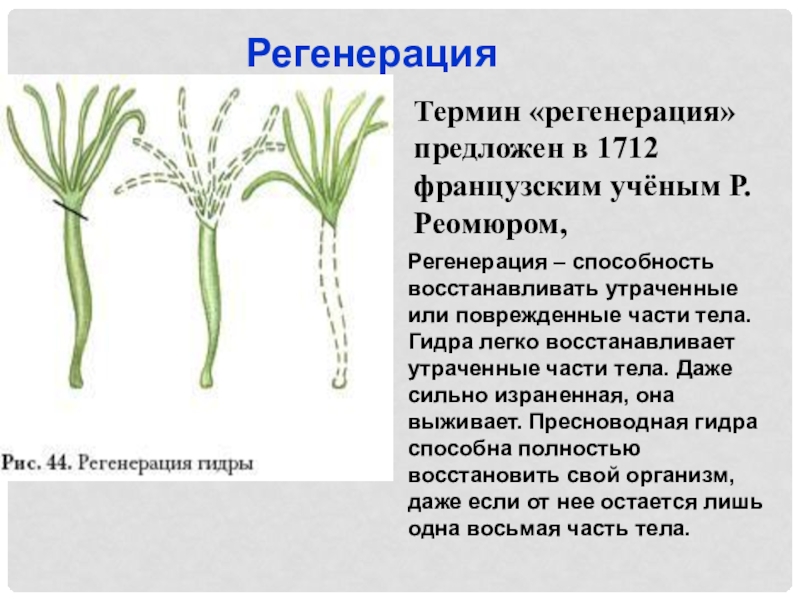 Термин «регенерация» предложен в 1712 французским учёным Р. Реомюром,