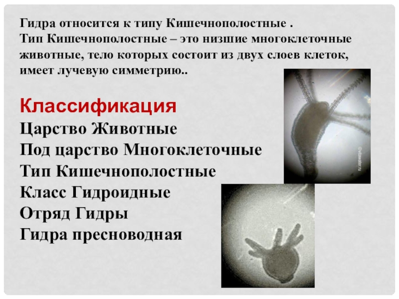 Слайд 12Гидра относится к типу Кишечнополостные .