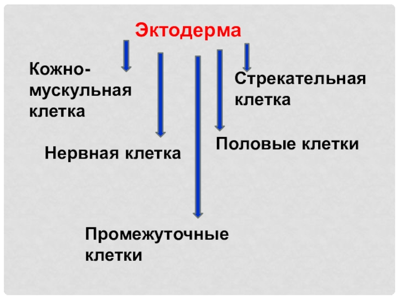 4. Наружный слой тела кишечнополостных образован кожно-мускульными, стрекательными, нервными и промежуточными клетками.