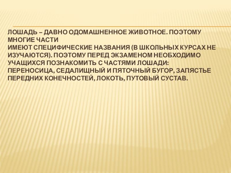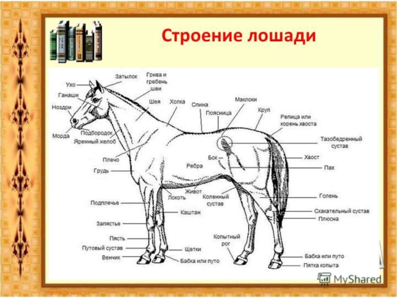 школьных курсах не изучаются). Поэтому перед экзаменом необходимо учащихся познакомить с частями лошади: