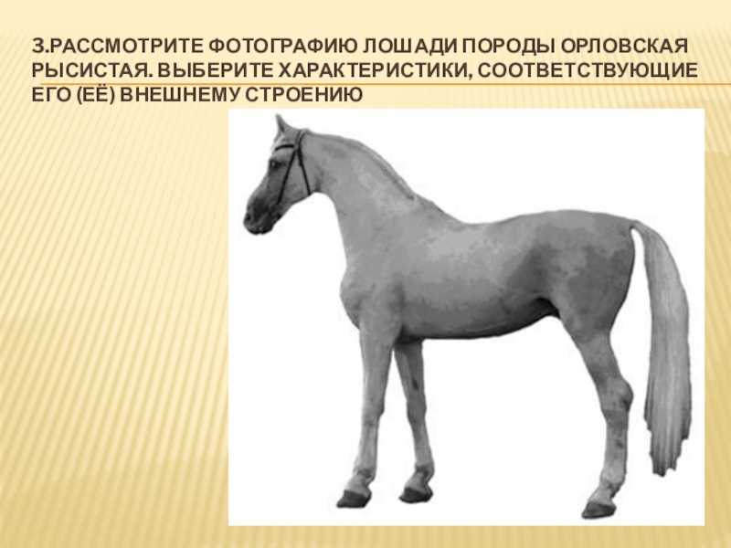Слайд 153.Рассмотрите фотографию лошади породы орловская рысистая. Выберите характеристики, соответствующие его (её)