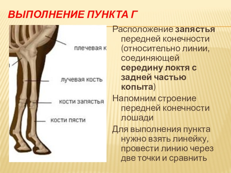 Г. Расположение запястья передней конечности (по схеме из 3 позиций)