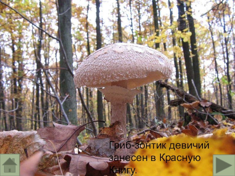 Слайд 26Гриб-зонтик девичий занесен в Красную