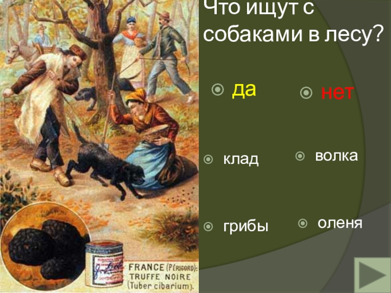 Что ищут с собаками в лесу?данеткладволкагрибыоленя