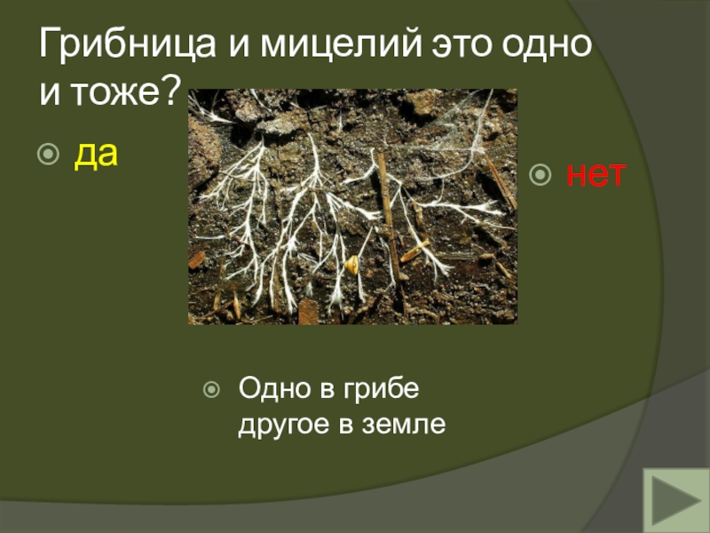 Грибница и мицелий это одно и тоже?даОдно в грибе другое в земленет