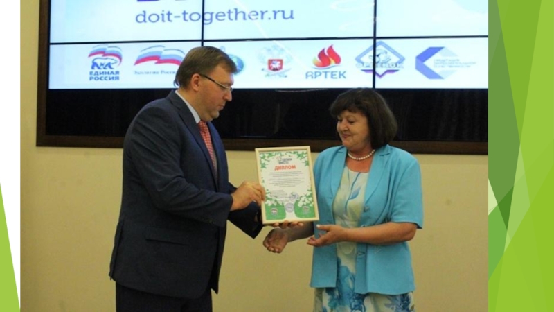 Яна Александровна Ведута, была награждена дипломом победителя регионального этапа Акции « Всероссийский экологический урок «Сделаем вместе!» в номинации « Лучший куратор Акции в образовательном учреждении», диплом вручал и. о. министра образования Ростовской области Андрей Евгеньевич Фатеев.