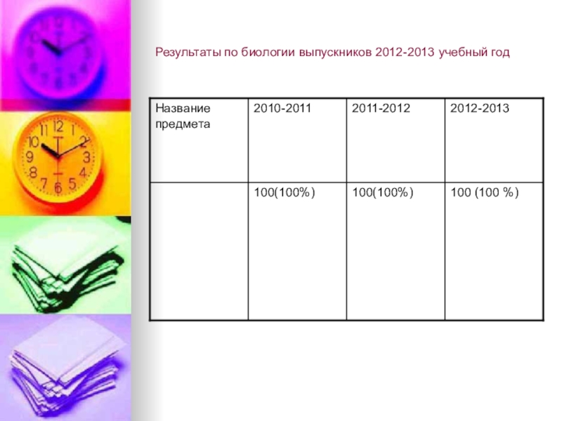 Слайд 46Результаты по биологии выпускников 2012-2013 учебный год