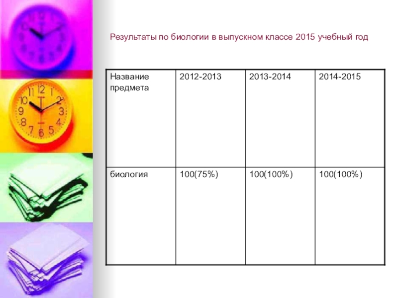 Слайд 44Результаты по биологии в выпускном классе 2015 учебный год