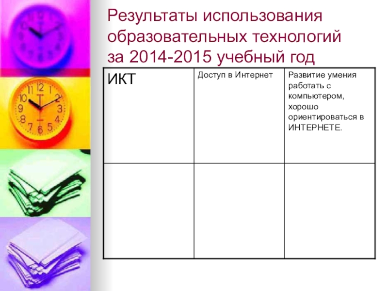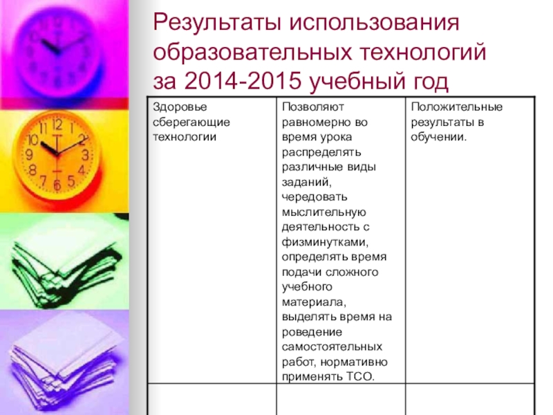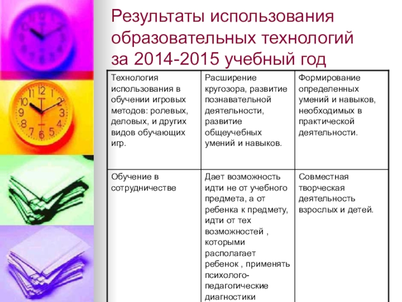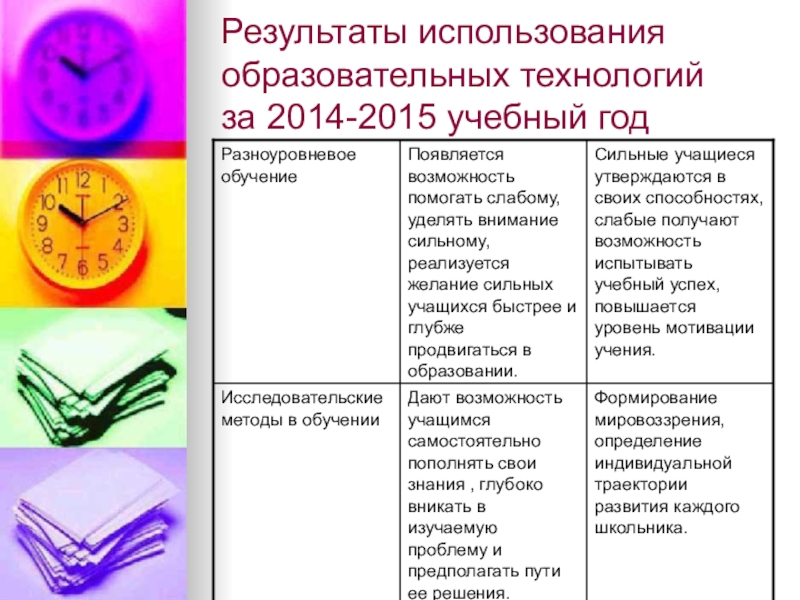 Слайд 10Результаты использования образовательных технологий за 2014-2015 учебный год