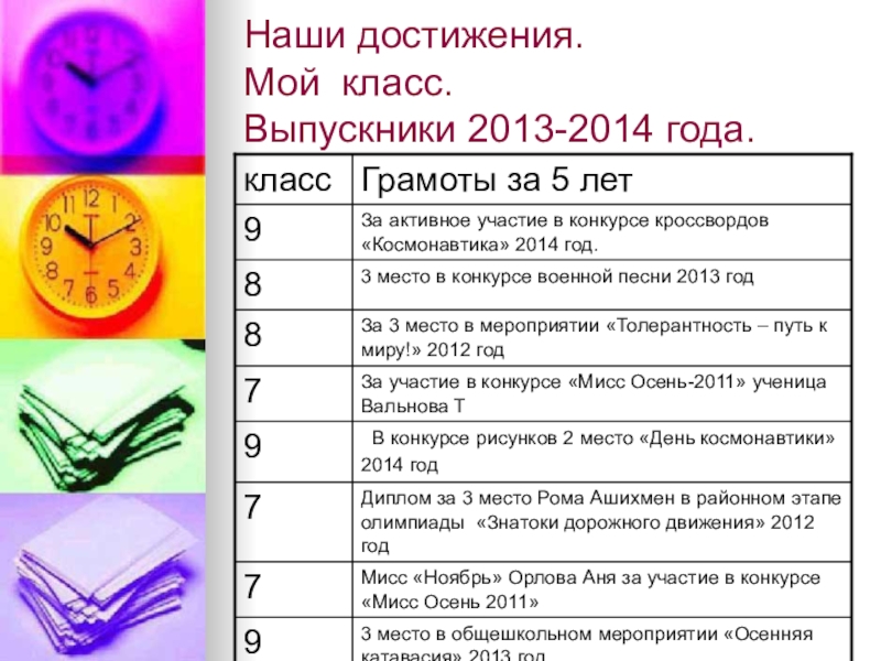 Слайд 18Наши достижения. Мой класс. Выпускники 2013-2014 года.