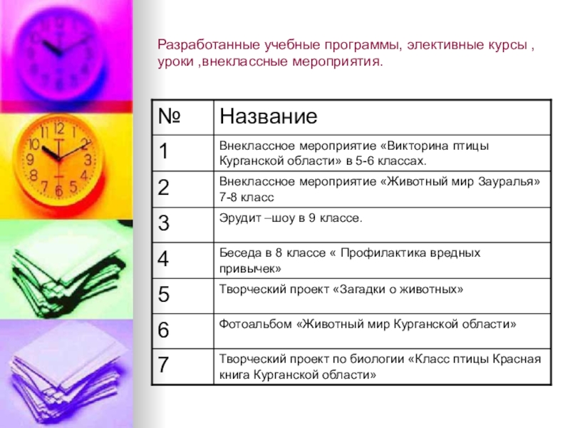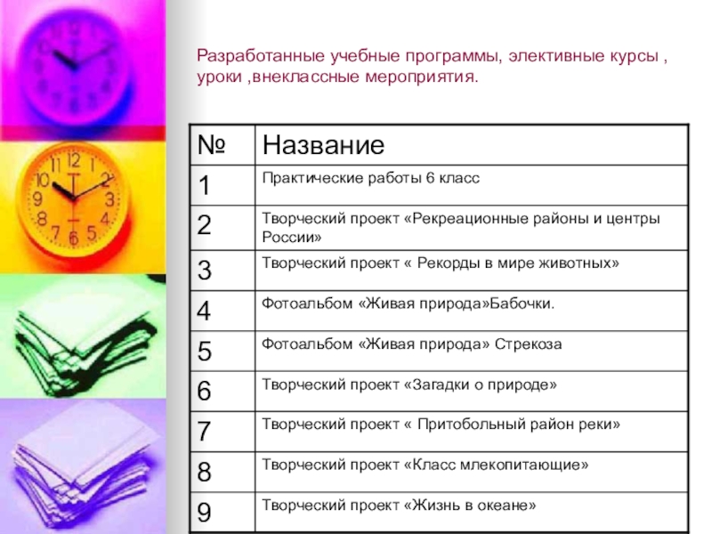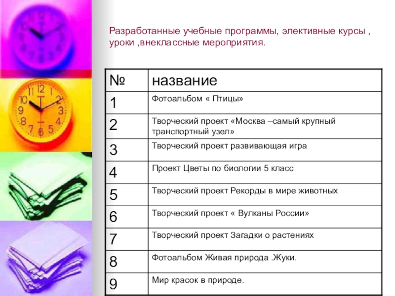 Слайд 16Разработанные учебные программы, элективные курсы , уроки ,внеклассные мероприятия.