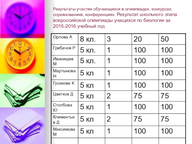 Результаты участия обучающихся в олимпиадах, конкурсах, соревнованиях, конференциях. Результат школьного этапа всероссийской олимпиады учащихся по биологии за