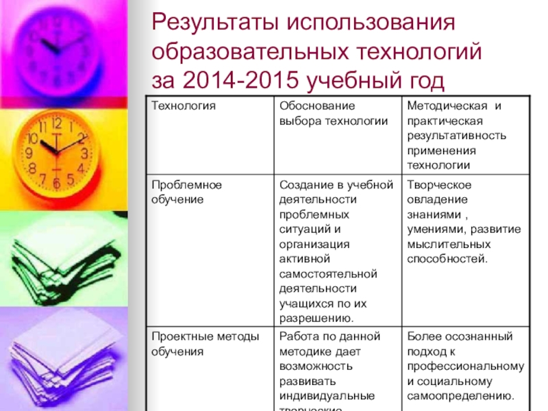 Результаты использования образовательных технологий за 2014-2015 учебный год